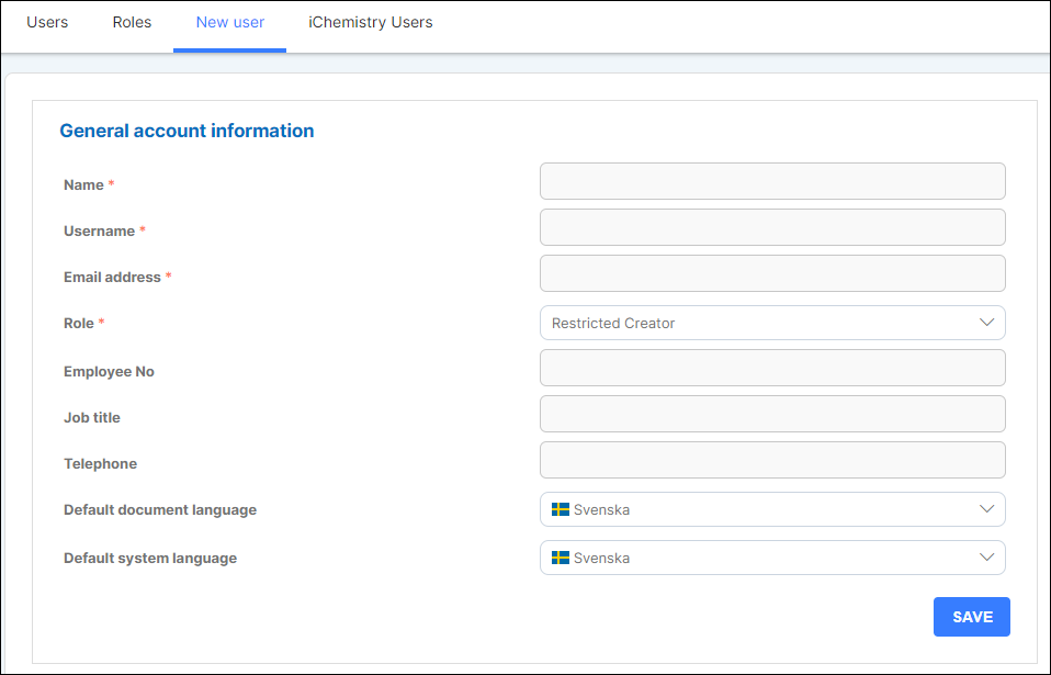 When creating a new user there a few fields that are mandatory to fill and it is marked with a red asterix.