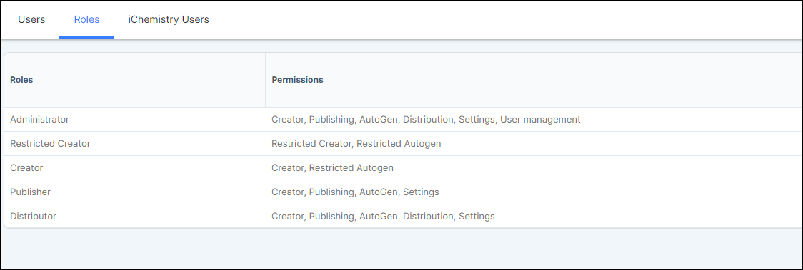 Besides listing the created users from iChemistry, you also have the possibility to disable/enable which of the users that should be active in the right corner of your screen.
