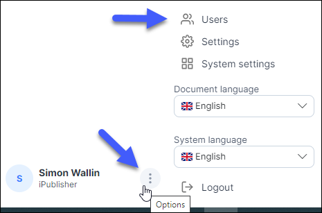 In the upper menu the user button is located which allows you to create, edit, and assign roles to your users.