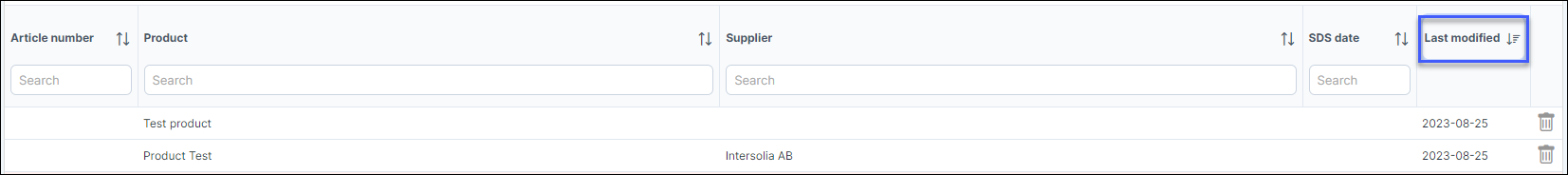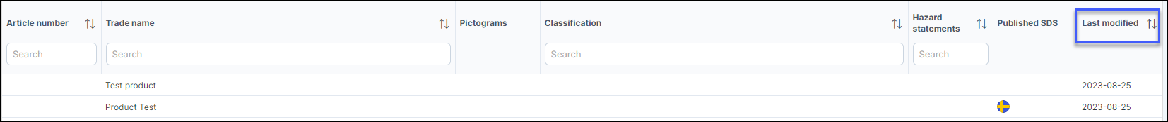 This enables you to see newly modified products and the dates can easily be sorted by clicking on the up and down arrow.