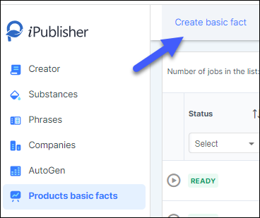 Click on Create basic fact in the upper left and you will be met with the following page: