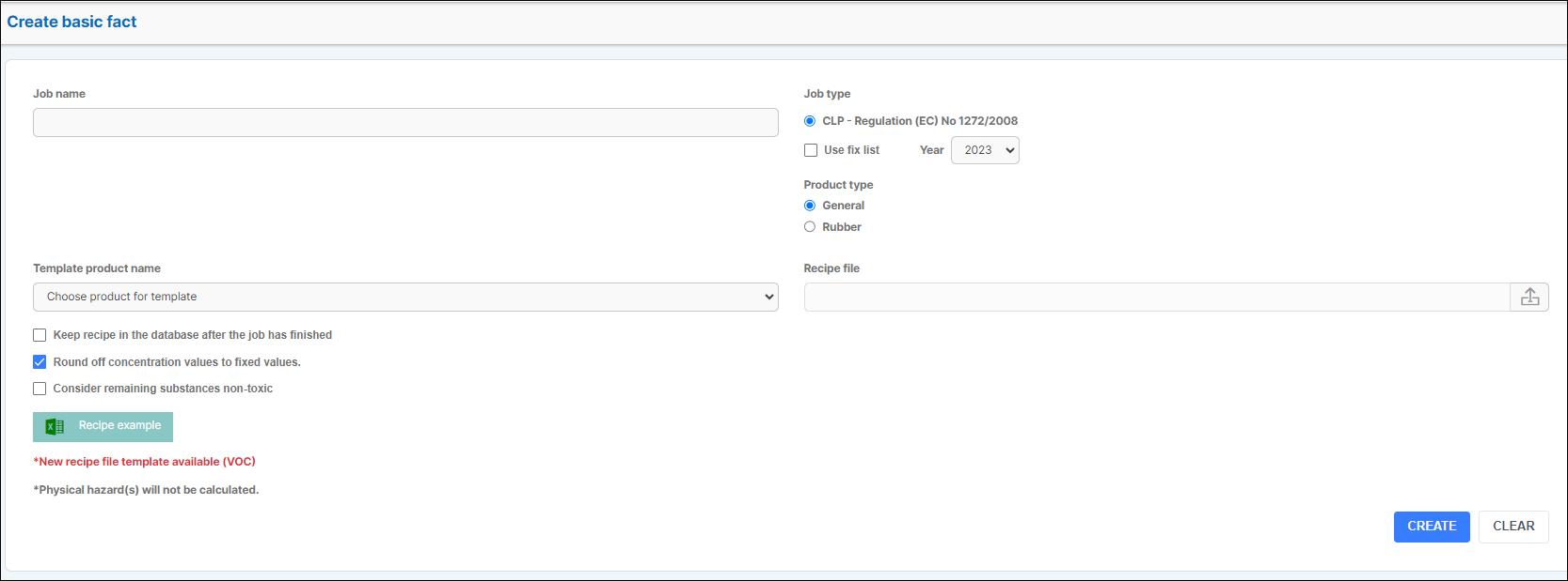 Upload the recipe file (excel template from KEMI) to the right via 'Recipe file' by clicking on the upload icon.