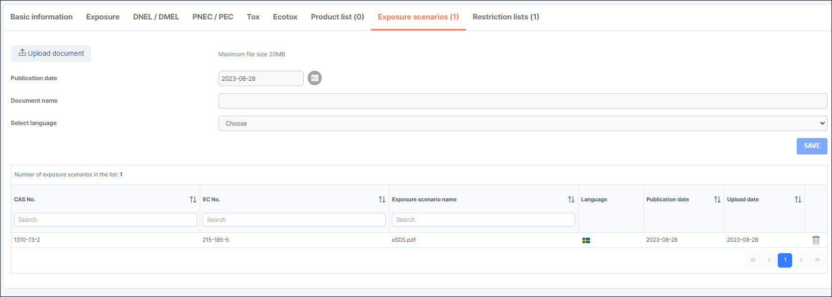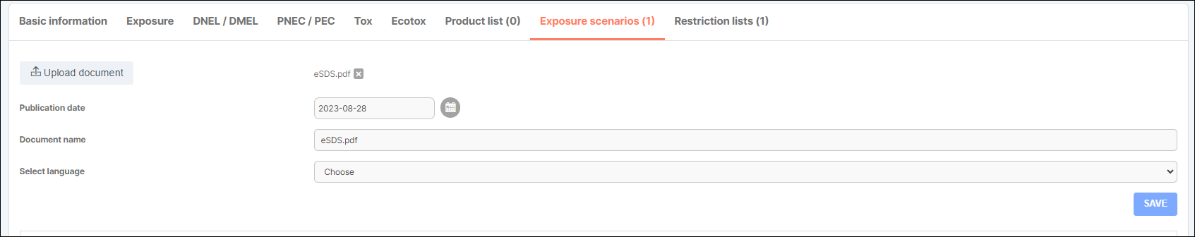 If you want to connect an exposure scenario document to an SDS and to create an eSDS (eSDS), it can be done via a substance that the exposure scenario affects.
