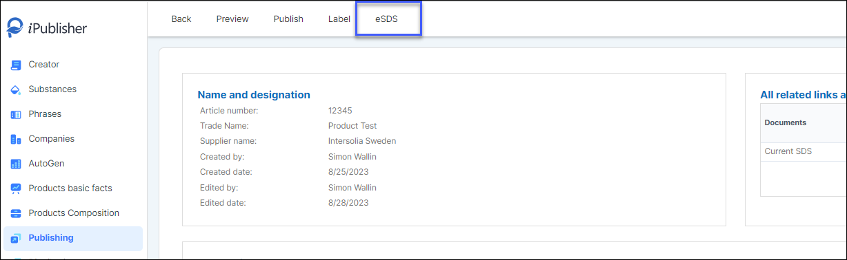 Any product, which uses substance with available ES, can be used to create eSDS,