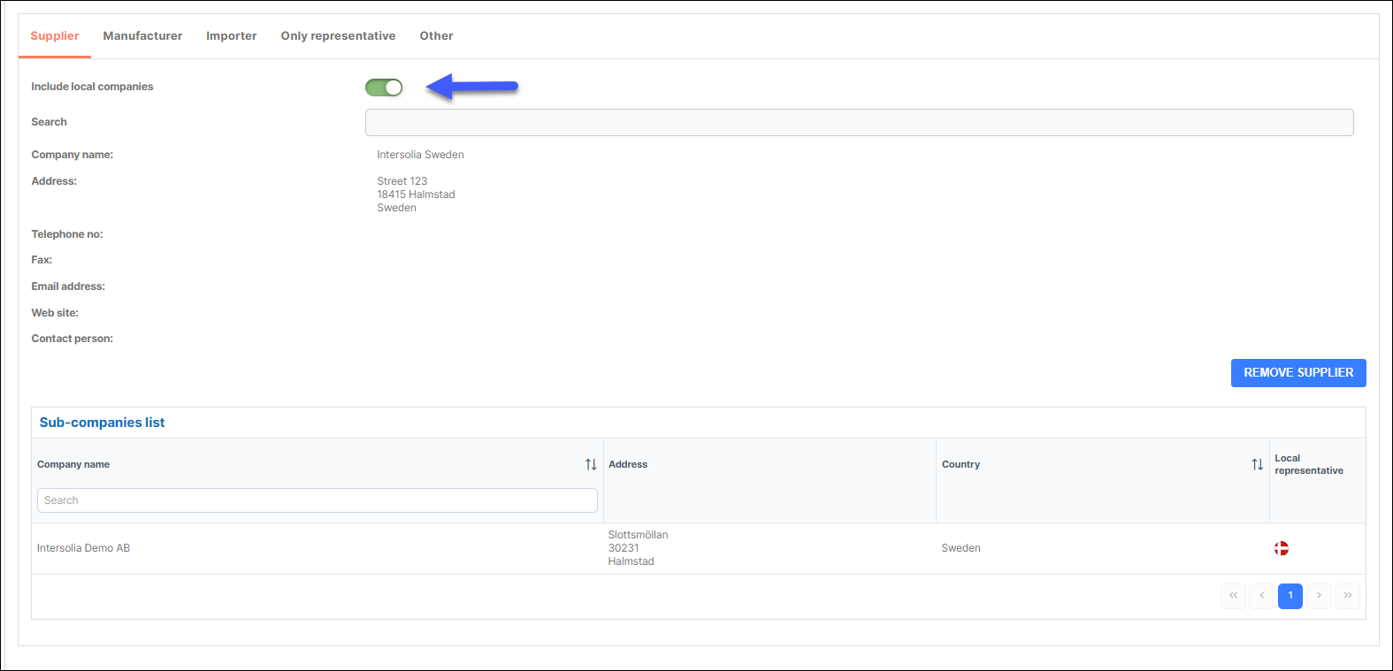 Users can add a company to Supplier, Manufacturer, Importer, Only representative or Other.