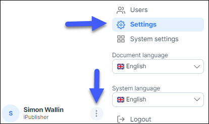 Logos are uploaded and managed by the users only and can be found under the Settings-icon in the upper right menu row.